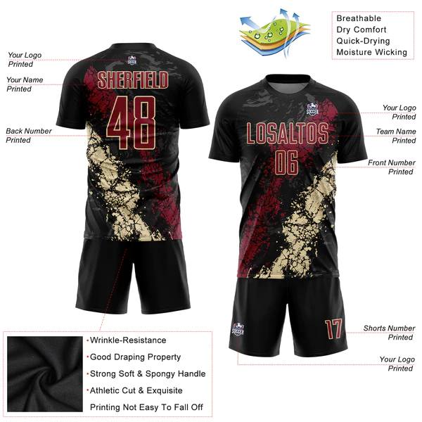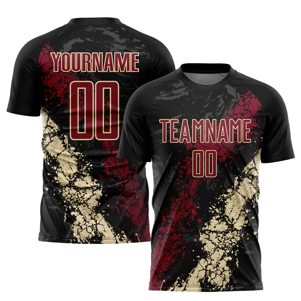 Custom Black Crimson-Cream Sublimation Soccer Uniform Jersey