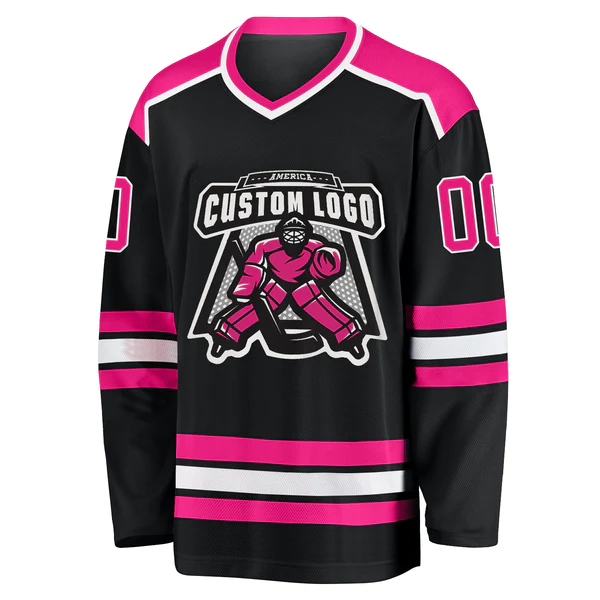 Be the first to review “Custom Black Hot Pink-White Hockey Jersey”