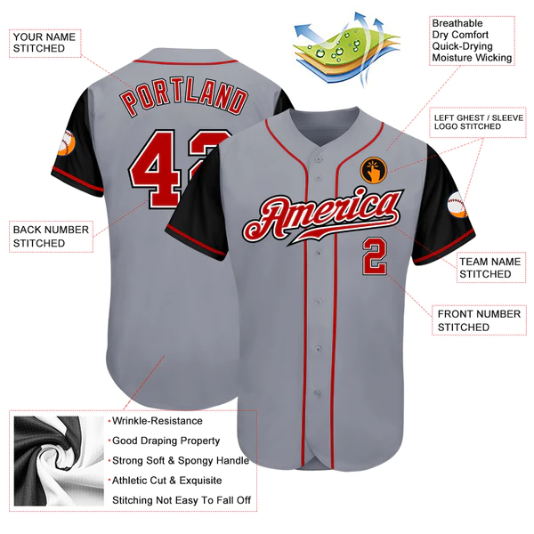 Be the first to review “Custom Gray Red-Black Authentic Two Tone Baseball Jersey”