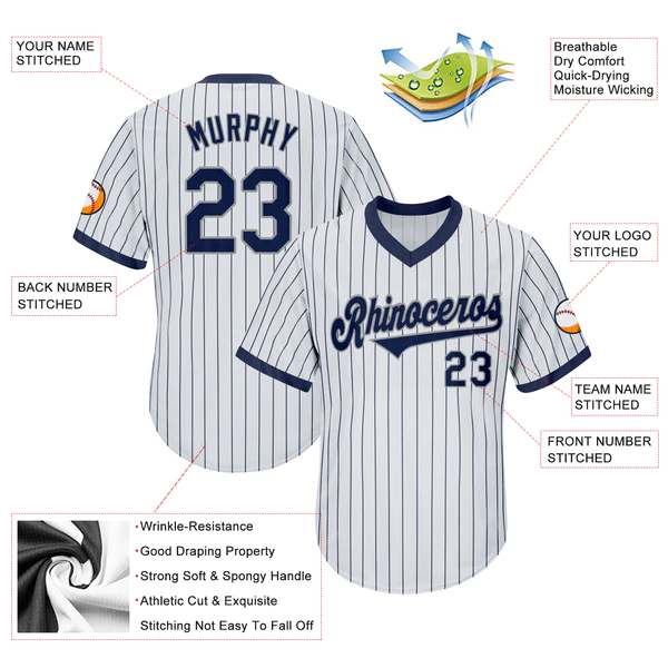 Be the first to review “Custom White Navy Pinstripe Navy-Gray Authentic Throwback Rib-Knit Baseball Jersey Shirt”